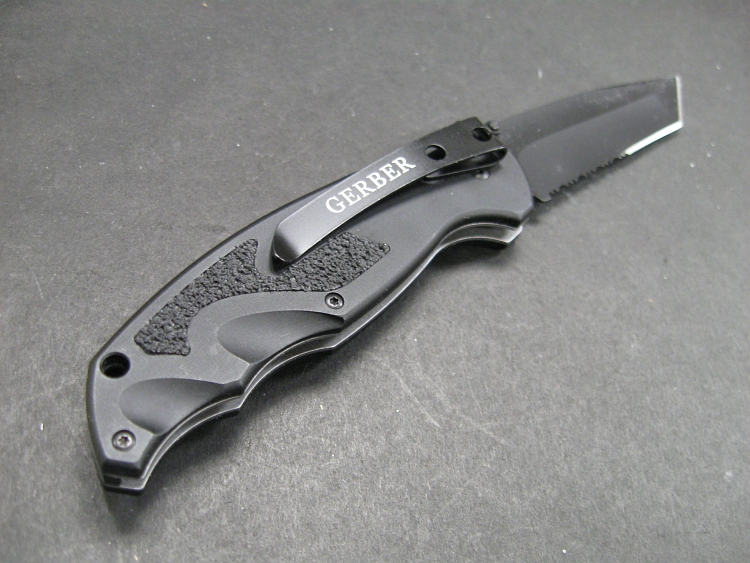 it’s a fairly typical folding knife with a black-coated, partially
