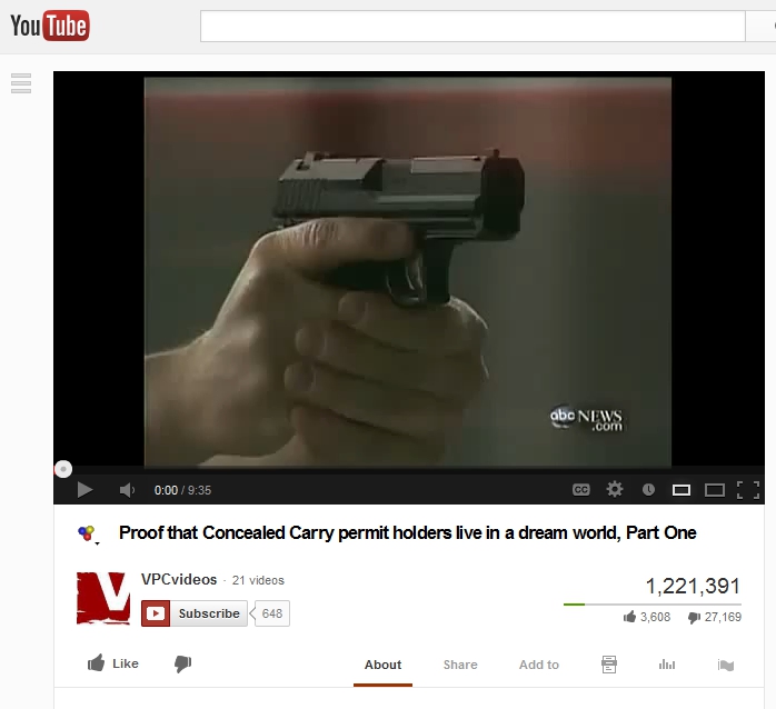 The VPC’s video, “Proof that Concealed Carry permit holders live in a dream world,” is a clip from an ABC News story. It is an attempt, on the part of left-leaning ABC and the Violence Policy Center,to paint the very carry and use of firearms as a futile gesture. In other words, the VPC hopes to persuade you that even if it were legal to carry a firearm, you would be stupid to do so, because you are deluded into thinking you might actually effect positive change with your weapon.